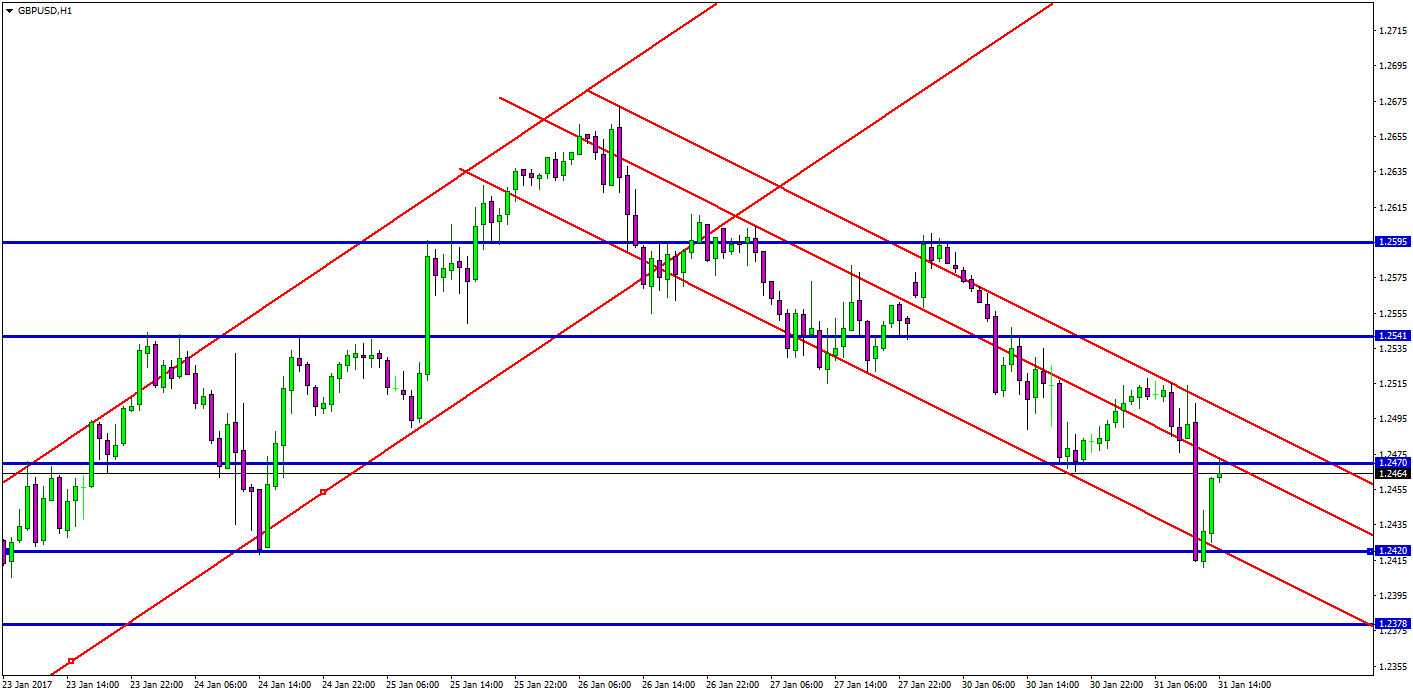 Я уже писала о том, что пара GBP/USD в среднем сроке торгуется в боковике, и пару дней назад мы получили отбой от верхней границы диапазона, поэтому можем рассчитывать на дальнейшее снижение. Если перейдем на более мелкие диапазоны, то перед нами открывается возможность спекулирования в нисходящем канале, внутри которого также хорошо себя показывают уровни. На данный момент актив находится в середине канала, пытаясь сформировать зеркальный уровень. Покупки будут актуальны до 1.2500, а продажи — до 1.2410. Стоит помнить, что именно продажи имеют приоритет в случае торговле в нисходящих каналах.